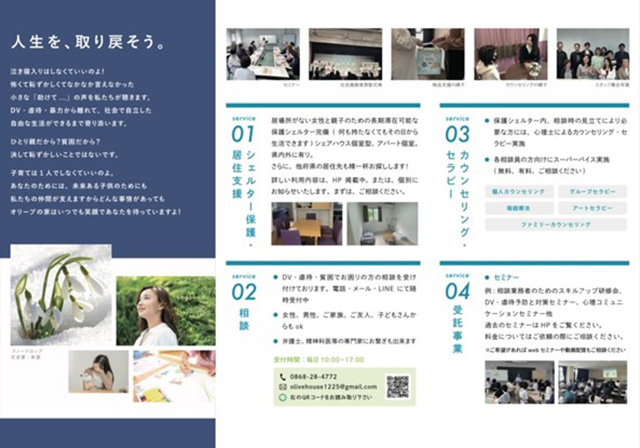 ・毎日のDV相談業務・心理カウンセリング・心のケア・各セラピー(対面及び電話・メール含む)
