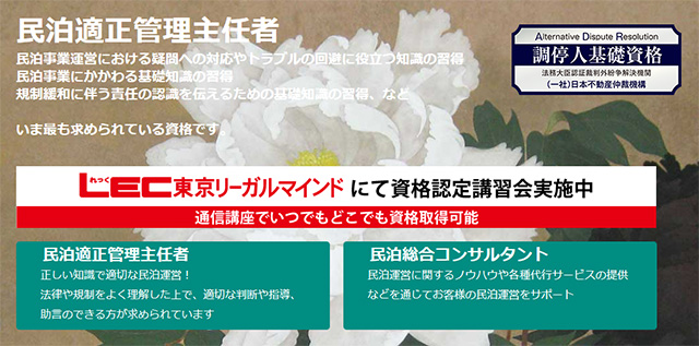だからこそ、適正な民泊運営方法知り、実践する存在である専門家「民泊適正管理主任者」が求められているのです。